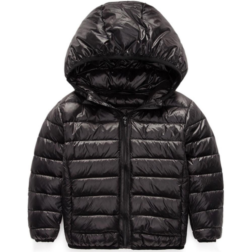 子供服 ダウンコート ダウンジャケット キッズ 無地 フード付き ベビー服 男女兼用 子ども アウター 防寒 軽量 冬 100~160cm ブラック