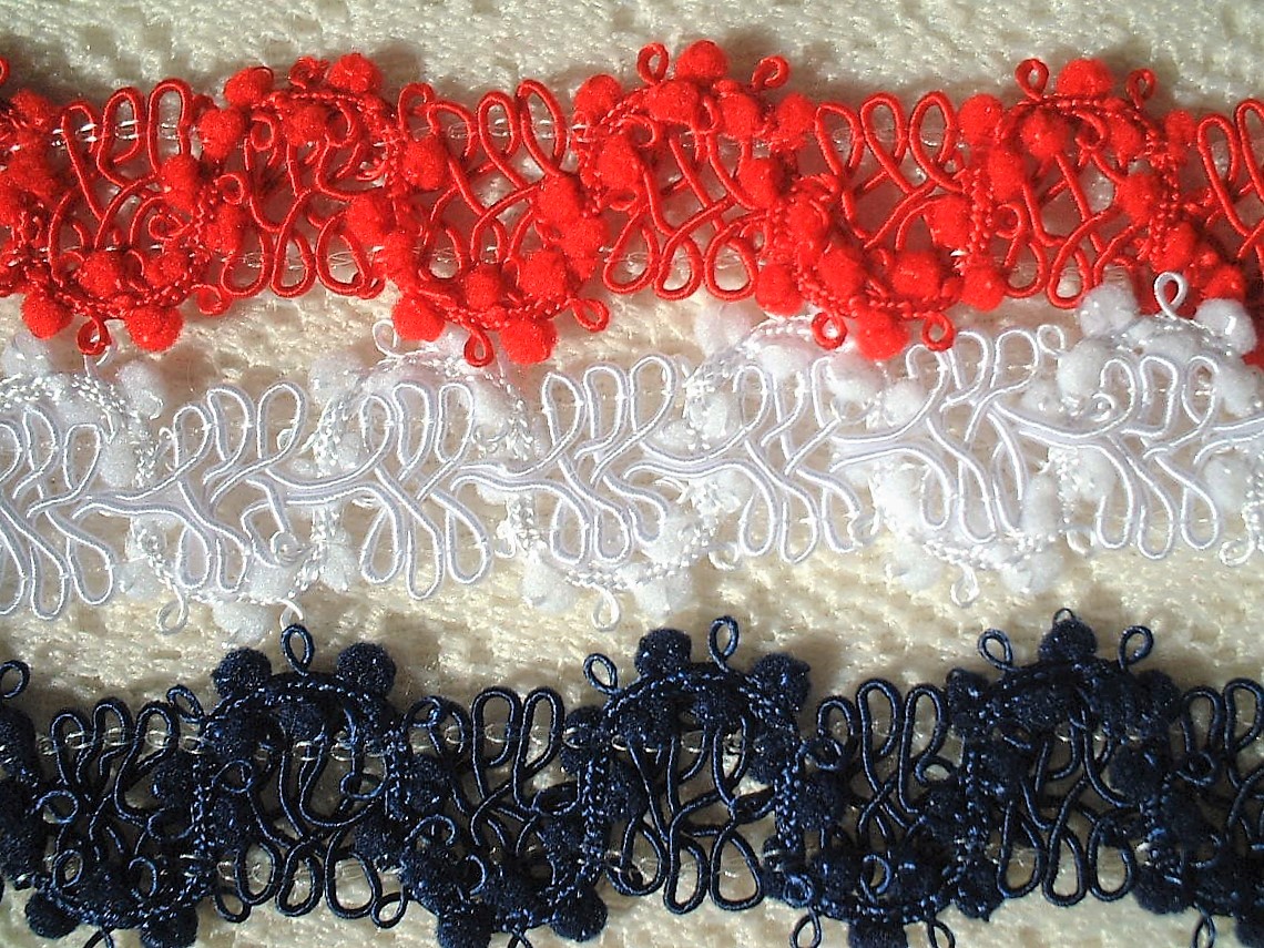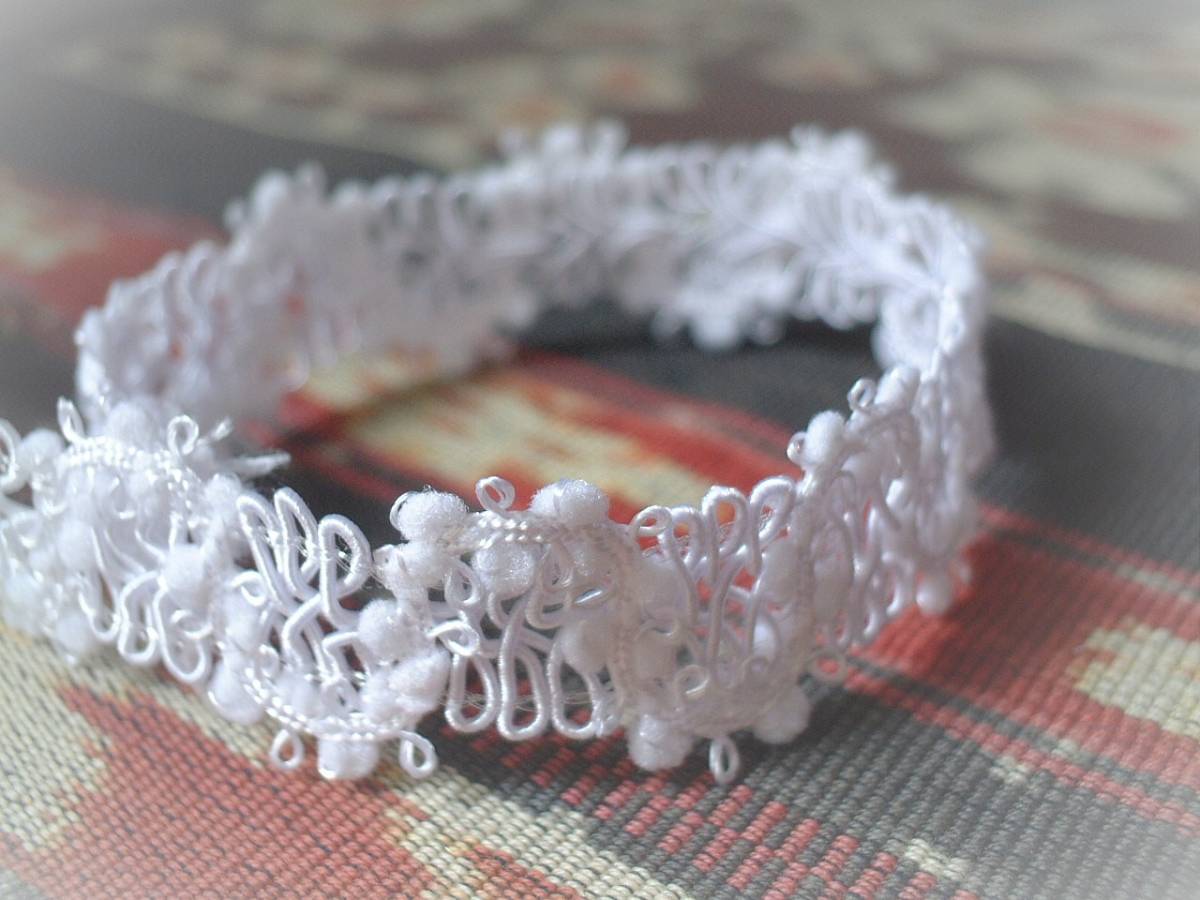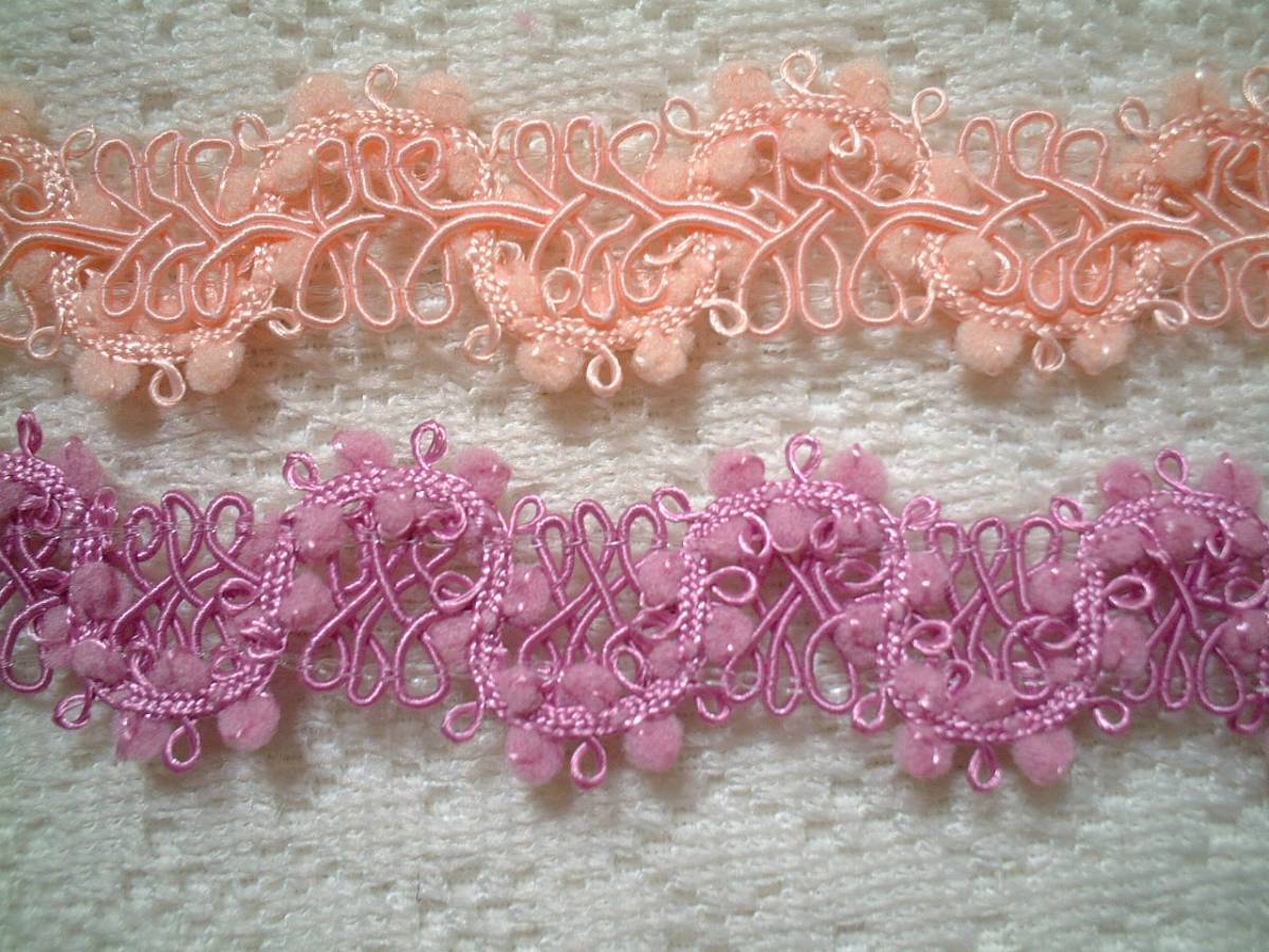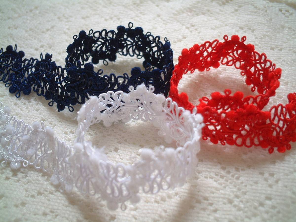 ご覧頂きありがとうございます。 きれいなブレードレースです。 1色お選びいただきお知らせください、延長可能です。 全体巾約2cm*ポンポンのサイズ約2.5mm お取り置きも承りますので、落札後に1度必ずご連絡くださいませ。 オンラインショップとの同梱も可能です。 | ||