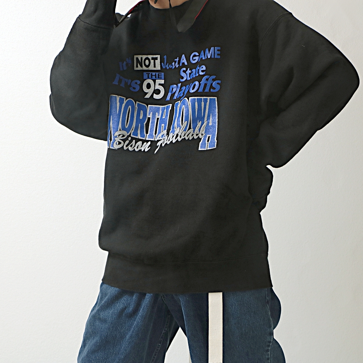 90s FRUIT OF THE LOOM フルーツオブザルーム フットボールプリント スウェット トレーナー 古着 used