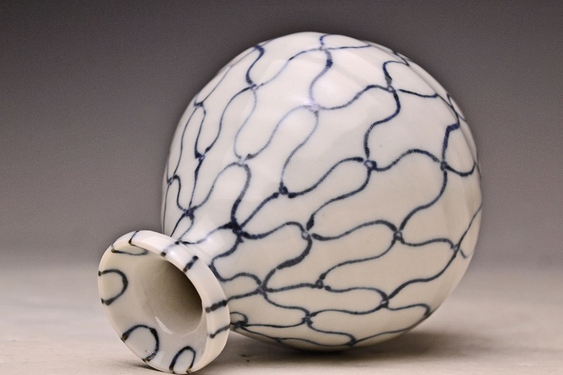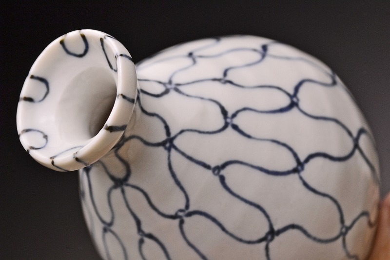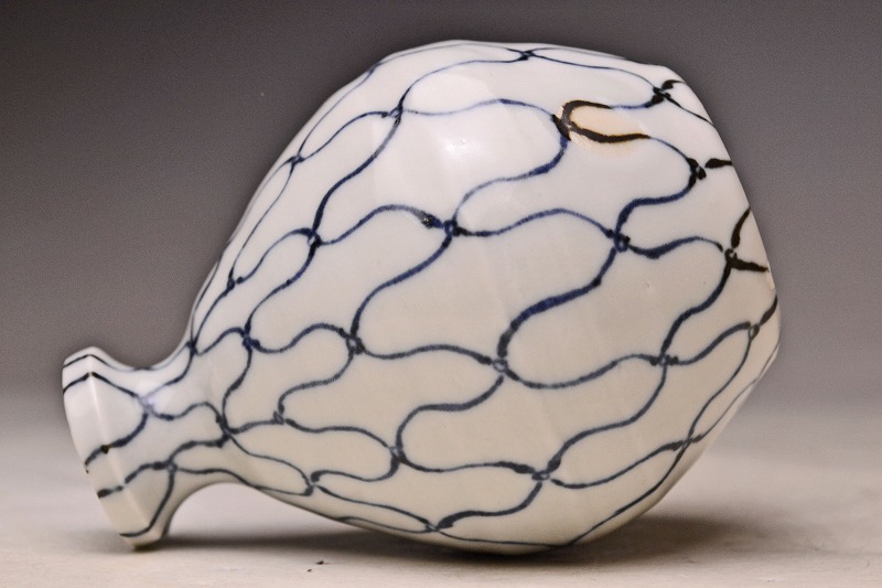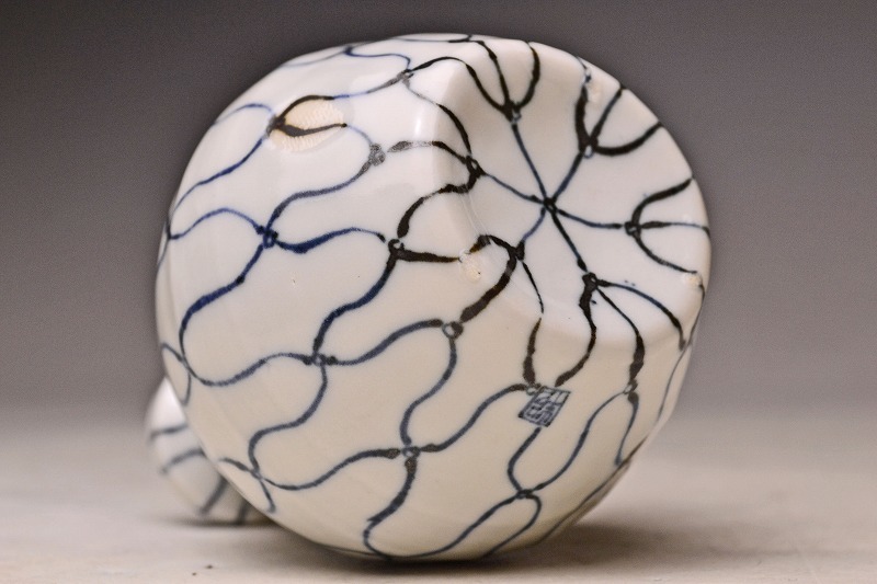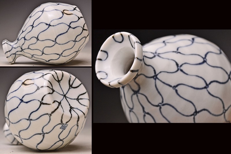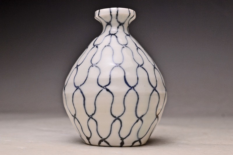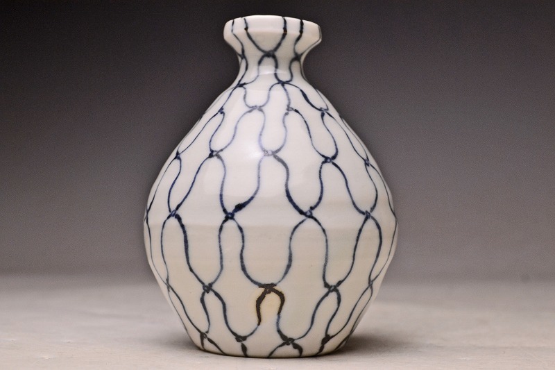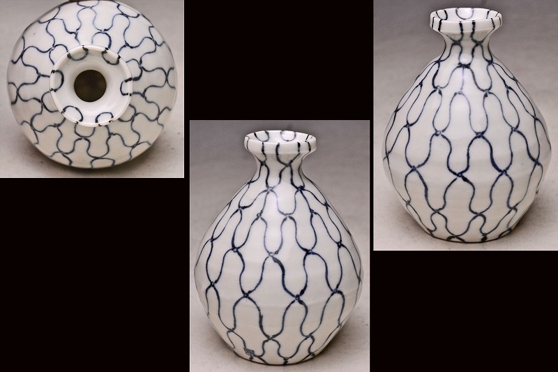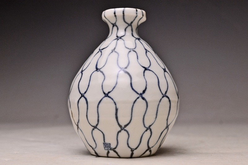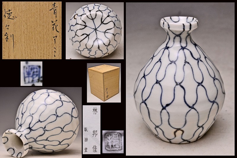 林邦佳 ★ 青花 アミ文 徳利 ★ 共箱 共布 栞 ★ 師:加藤十右衛門 ★ 酒器 ★検 西村昭二郎 日本画