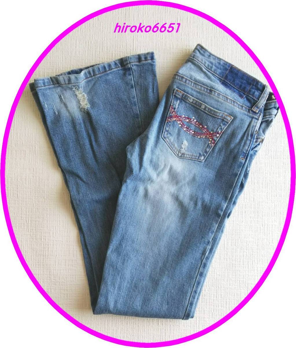 ☆格安 セール 新品 レア!813 アバクロ ジーンズ Adele Rhineston denim ガールズ 16 デニム WC フレアー ダメージ Abercrombie & Fitch☆