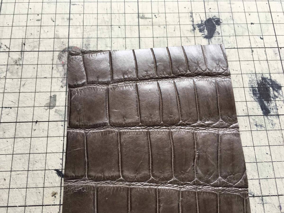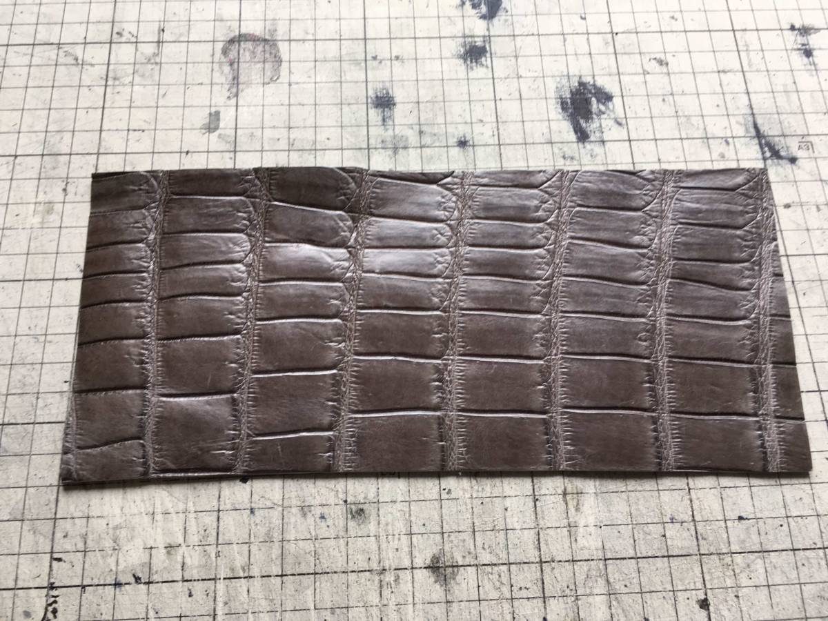 CR1-1436★マット スモークチタン 鉛色 最高級スモールクロコダイル レザークラフト アリゲーター はぎれ ハギレ 革小物名刺入れ財布