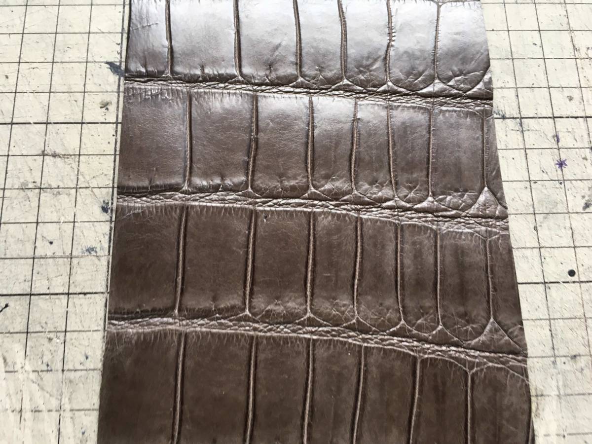 ご覧下さいまして有難うございます。当方で扱っているワニ革は海外国内の大手メゾンに使用されるワニ革、百貨店に並ぶアイテムに使用されているワニ革でございます。中華産、タイ産なめしのワニ革にご満足頂けない方、こだわった作品作りのためクオリティをお求めの方にお選び頂けております。★★★キャンペーン★★★ワニ革ハギレ5点(価格問いません)同時ご落札の方限定でお好きな3000円以下ワニ革ハギレ1点無料プレゼントさせて頂きます。⇒5点落札後、おまとめ取引依頼頂き、お支払い後、ご希望のワニ革ハギレの商品番号もしくはURLを取引連絡よりお知らせ下さいませ。7点同時後落札の場合⇒4000円以下、10点同時ご落札の場合⇒5000円以下(あるいは3000円以下2点)1点無料同梱対応致します!★★★最高級スモールクロコダイルポロサスの本ワニ革のハギレになります。マット仕上げのスモークチタン 鉛色です。ビッグメゾンも使っているタンナーでかなり腑のクオリティが高いです。レザークラフトのパーツ取り、小物作りにどうぞ。本体裁断後未使用になります。皮革につき、染めムラ、傷、穴などある場合がございます。(※お写真でご確認下さいませ)写真ではなるべく広げていますが、