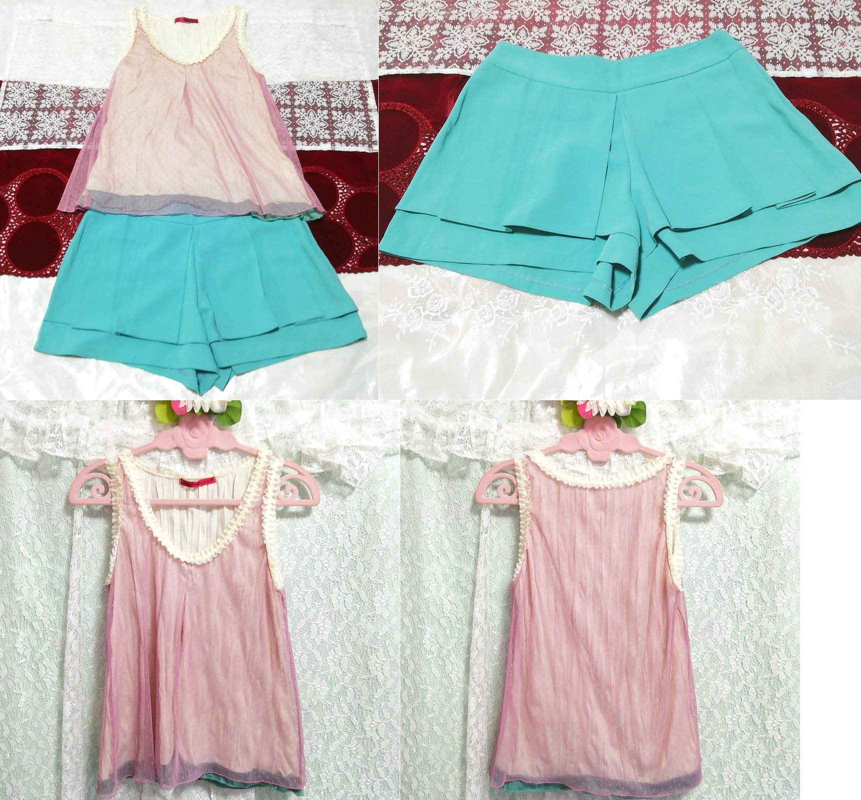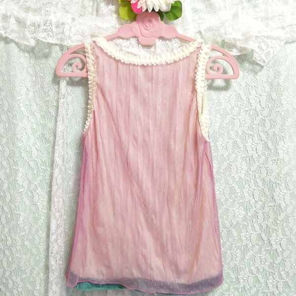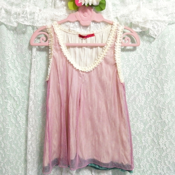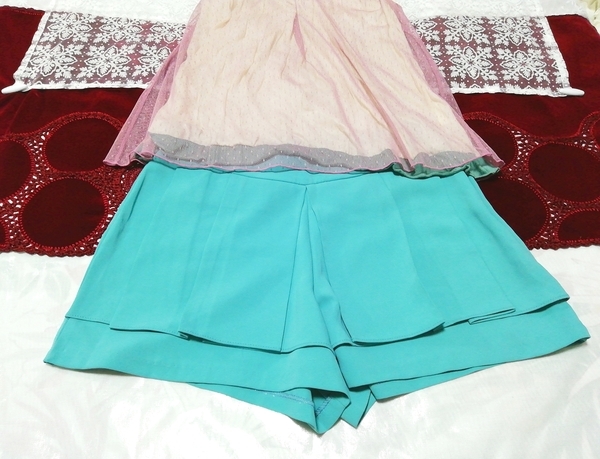 ピンクノースリーブフリルチュニック ネグリジェ 緑ショートパンツ 2P Pink frill tunic negligee green shorts