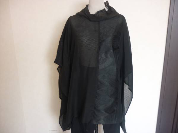 絽の着物と夏の紗の帯を解いて、大きいサイズのポンチョにリメイク致しました。実寸は、ゆき丈98、総丈71、身幅62です。襟には、手芸用特殊アルミを入れておりますので、自由な形になります。