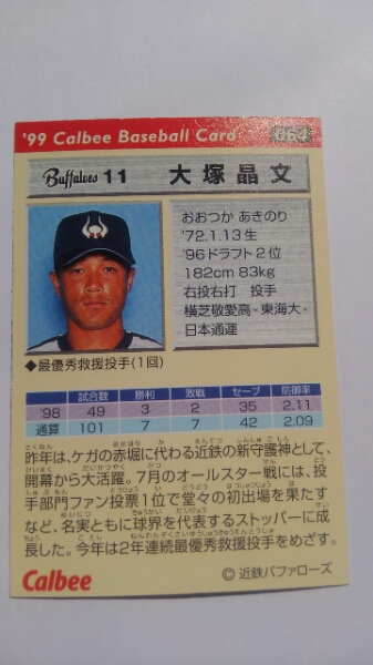 現中日ドラゴンズコーチ大塚晶文1999カルビー64大阪近鉄バファローズ |