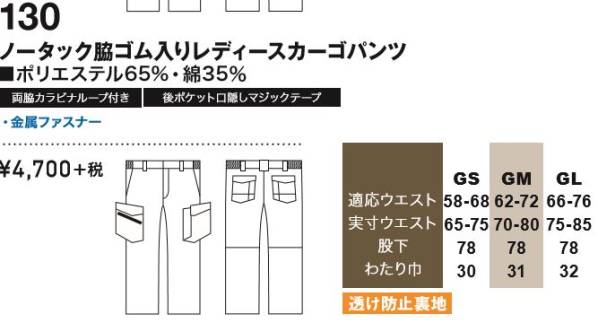 新品☆SOWA ノータック脇ゴム入りレディースカーゴパンツ(130)