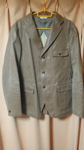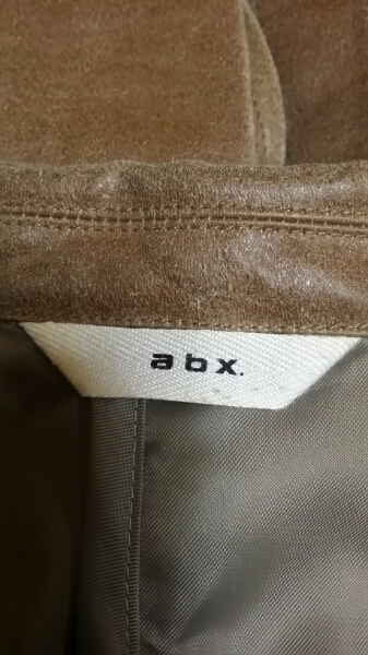 abx ケース付きレザー風加工3Bテーラードジャケット茶色サイズ3(Lサイズ程度)です。あて布予備ボタン2個付き。Usedの為ケース共に汚れ使用感あり。表記サイズ3 チェスト94 身長175 表地コットン59%ポリエステル41% 裏地ポリエステル100%。平置き44身幅52着丈70袖丈58センチ。かんたん決済のみの取り扱いでゆうパック送料着払いにて発送させて頂きます。Usedの為使用感ありますのでノークレームノーリターンでお願い致します。入札前に自己紹介欄を御覧下さい。