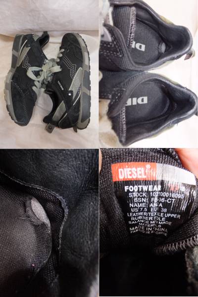 ★ブランド名 DIESEL ★ブランド説明 DIESELとは1978年レンツォロッソによって設立されたイタリアのアパレルメーカーです。セカンドラインに55DSLがあります。ハイエンドなカジュアルブランドとして世界中で人気のブランドです ★アイテム名 スニーカー ★表記サイズ USレディース7.5 EUR38 24.5cm ★実寸サイズ アウトソール26.5cm最大幅10cm ※多少の誤差はご理解お願いします ★説明 ディーゼルのスニーカーです。モデル名はANZA。スエードレザーとメッシュのコンビでスタイリッシュなランニングスニーカータイプです。 ★商品状態(5段階) 『C』 『A』USEDですがとてもきれいな状態 『B』使用感はあるが目立つダメージのない状態 『C』使用感、部分的に汚れやダメージのある状態 『D』 特に使用感や汚れ、ダメージがある状態 『E』 新品 or 未使用品 『B~D』は汚れや傷の有無を確認お願いします ★傷の有無 全体的に美品ですが一カ所、右足中敷きのかかとに破れがあります。 ★素材 レザー メッシュ ラバー ★カラー ブラック ★生産国 中国 ☆★☆★☆★☆ 全品送料無料 ☆★☆★☆★☆ ※北海道、沖縄県、離島の方は別途料金が発生する場合がございます。必ず質問欄よりお問い合わせをお願いいたします。されずに購入された場合は別途料金のお支払いが確認できるまでは発送を行えませんのでご注意下さい。 ☆発送方法は当社指定のものに限らせて頂きます。日にち時間指定は可能ですが、発送業者は選べませんのでご注意下さい。 ☆主な発送業者はヤマト運輸、佐川急便のどちらかになります。 ※予告なく変わる場合もございます。 ☆半袖Tシャツ、半袖シャツ、に関しましてはネコポス便になります。気になる方は予め質問欄よりご質問お願いします。 ※厚みが超えて発送不可なものは宅配便で発送します。 ☆時間指定:午前中、14~16時、16~18時、18時~20時 からお選び頂けます。 ※ネコポス便は時間指定はできません。 ☆発送物が多く、その他の発送方法は一切お受けしておりませんので予めご理解お願い致します。 ☆全般的に古着にご理解の頂ける方のみご入札お願いします。 ☆ノークレームノーリターンでお願いいたします。 ☆注意事項☆ お荷物の発送等が多くご連絡、ご返信が出来ない場合がございます。 ご入金の確認、発送は土日祝以外はほぼ毎日行っておりますので 返信がなくても確認ができましたら早ければ落札の次の日には発送できます。 発送後のご連絡は必ず行いますが、ご希望の方以外にはこちらから追跡番号をお伝えする事はありませんのでご了承下さい。 商品の検品等は万全を期しておりますが、 万が一商品に問題がありましたら評価からではなく、 必ず取引ナビよりご連絡いただけますようお願い申し上げます。 ☆最後までお読み頂きありがとうございます!お買い物してよかったと思っていただけますよう努めてまいります。宜しくお願いします。 | ★ | |||||||