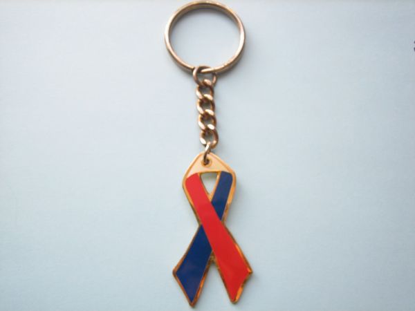 キーホルダー アウェアネス リボン 赤 青 ブルー レッド