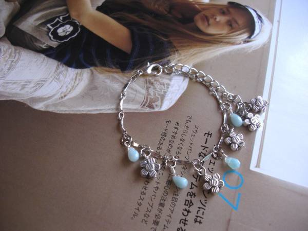 ルーズ・シルエット・・シリーズです♪6月の水色・・可憐なアマゾナイトのブレスレットです♪小さなドロップカットのアマゾナイトが儚げな表情です♪7×5ミリ位の小さなドロップカットのアマゾナイトはデザインチェーンに小さなお花のメ タルチャームと繋いで可憐な表情です♪ 長さは16センチ+アジャスター6センチで最長22センチ位です♪お揃いのネックレスやイヤリングも出品しています♪♪シン プルで飽きの こないいつまでも着けられるデザインを考えて作りました!ハンドメイドをご理解頂いてノークレーム、ノーリターンでお願いします