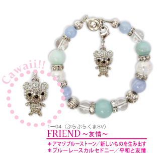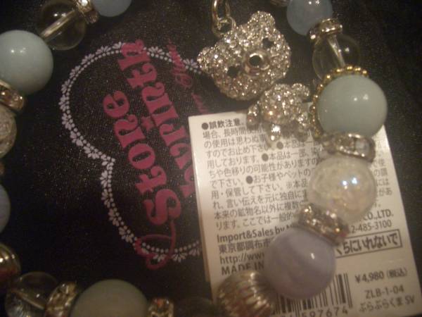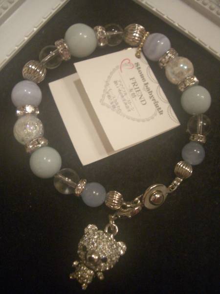 こちらは全て未使用新品♪ STONE LABYRINTHの商品です!! ラインストーンがふんだんに散りばめられたキラキラチャームがポイントのキュートなブレスレットです♪ 可愛いキラッキラのくまちゃんチャームは取り外しができるので、お気に入りのポーチにつけたり、手持ちのアクセサリーにつけて、自分なりのお洒落を楽しんでください♪ テーマは友情、アマゾンブルーストーン(新しいものを生み出す)×ブルーカルセドニー(平和と友情)の組み合わせです(#^.^#) ◆商品詳細 内径サイズ(腕周り):約15cm前後 ※商品には伸縮性のあるゴムを使用しております。 ※天然石を使用しておりますので、サイズが若干前後する場合がございますので予めご了承下さい。 可愛い巾着袋に入れて発送させていただきます♪♪ 定価は4980円☆ 気に入ってくださった方、格安ですので神経質でない方、NCNRで御了承いただける方のみ、どうぞ宜しくお願いします♪ 他にもラビリンスのブレスなど可愛い商品を沢~山出品しておりますので是非ご覧下さい(^_-)-☆ 必同梱は大歓迎です♪ ず自己紹介をご覧くださいませ♪
