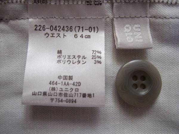 生地は、綿72%・ポリエステル25%・ポリウレタン3%製で、きちんと予備ボタンが1個付いております。