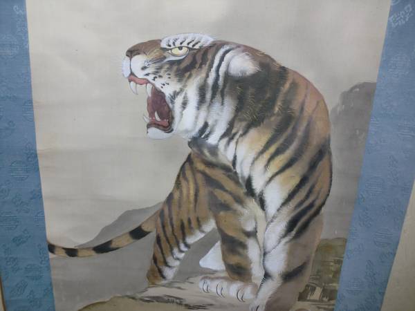 【模写】  掛軸 トテモ洒落た隠し絵?大虎之圖 無銘 絹本 木箱