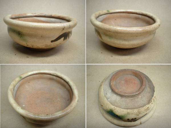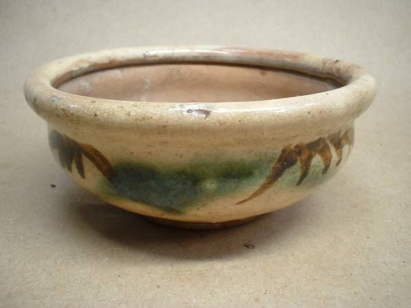 江戸期の弓野焼・野香炉です。笹の図が描かれています。口から1.5センチのニューが1本あります。口径10×底5×高4.5センチです。