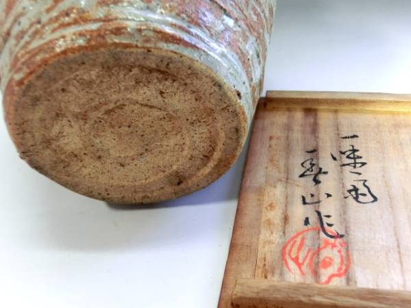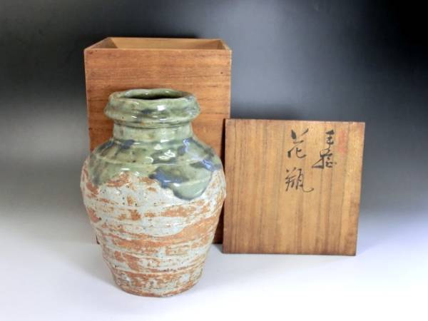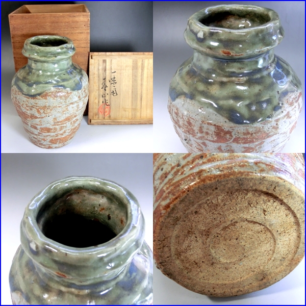 花瓶■手 名張窯 緑釉 一味 筒山作 渦高台 花器 骨董品■