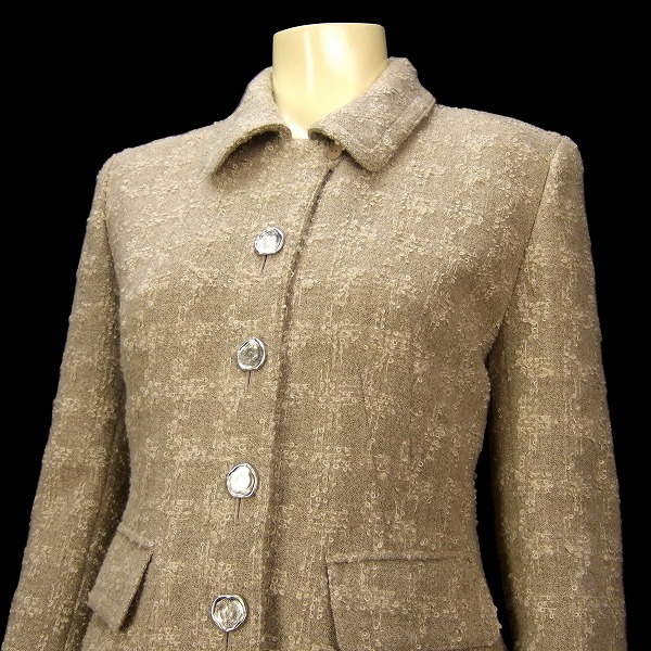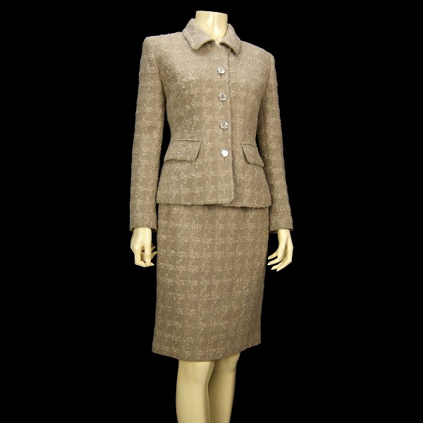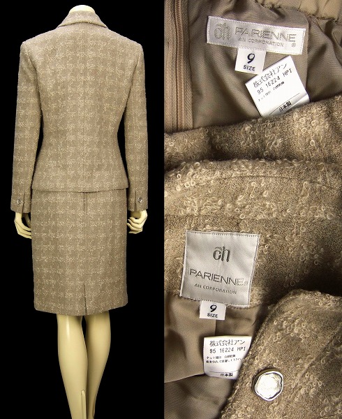 A 美品★PARIENNE パリエンヌ★エクルベージュ系*優柔ウール混素材&綺麗なループ織柄*貴賓スカートスーツ*9号/M*38