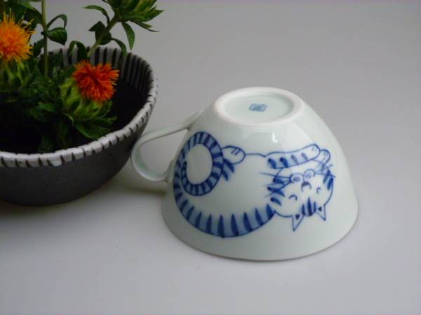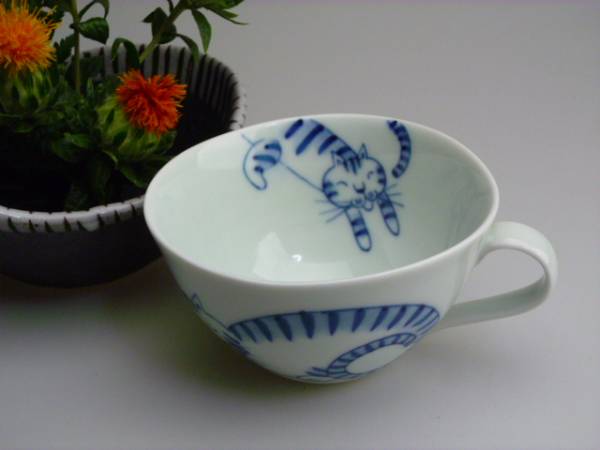 ★作家作★猫がかわいいスープカップ・親子猫・有田焼・手描きです。