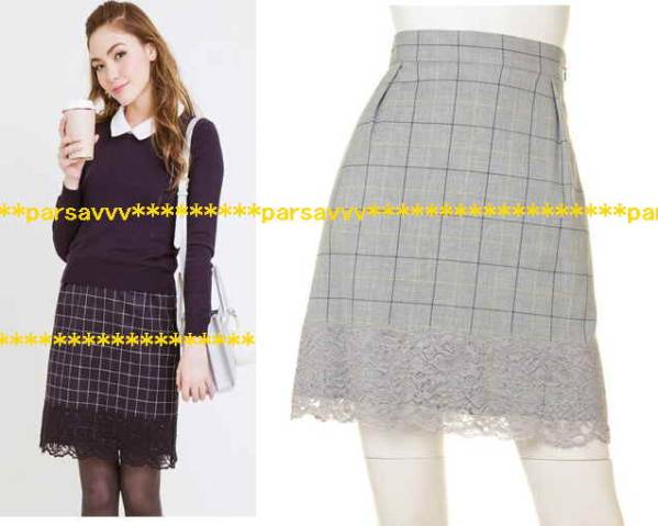 シックなウィンドウペンチェック柄が、モードな雰囲気を漂わせるスカートは、ヘムに配したレースで、レディなアクセントを添えています♪