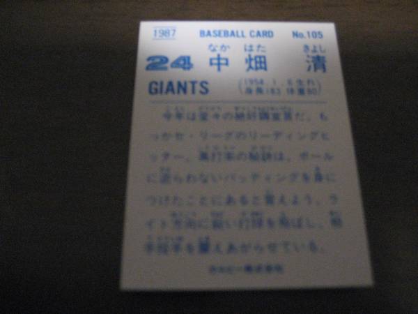 | ■カルビー1987年/No105中畑清/巨人 | ||