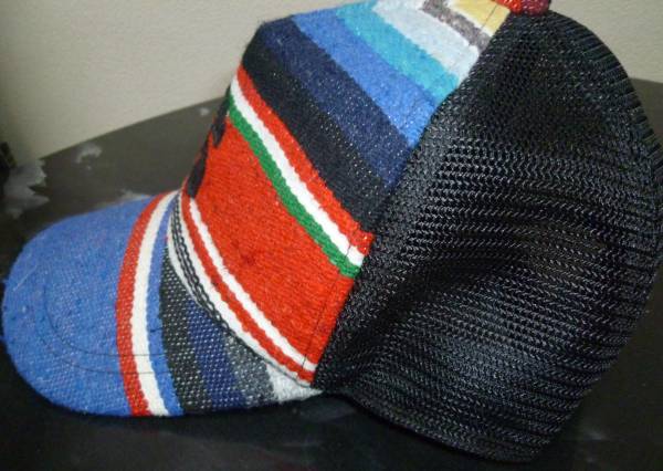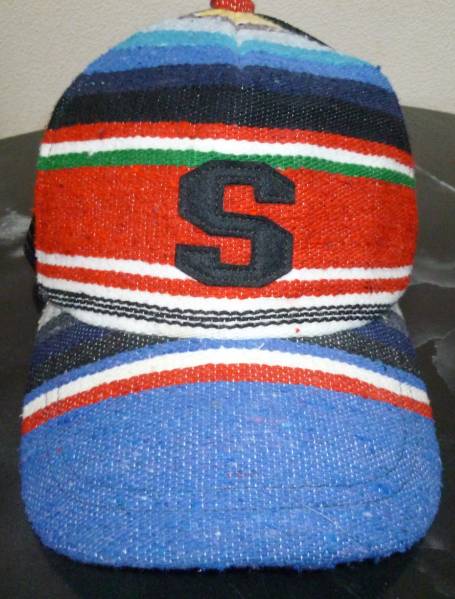 かなりデザイン性の高いキャップになり、フロント、つばの部分が様々な色の糸でネイティブな柄を作り出し、フエルトでSと貼られております。