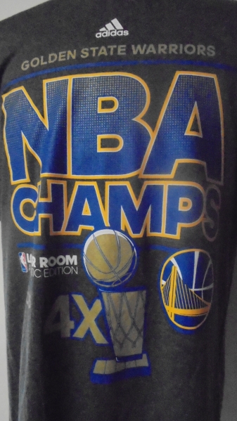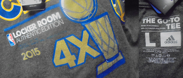 2015 NBA チャンピオン ゴールデンステート・ウォリアーズのステファン・カリー、クレー・トンプソン、アンドレ・イグダーラ等の選手やコーチが優勝決定時に着用していたTシャツです。
