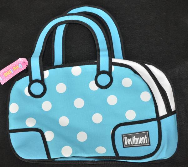 『送料無料』★2次元 2D バック★イラストカバン★ 水玉 水色★
