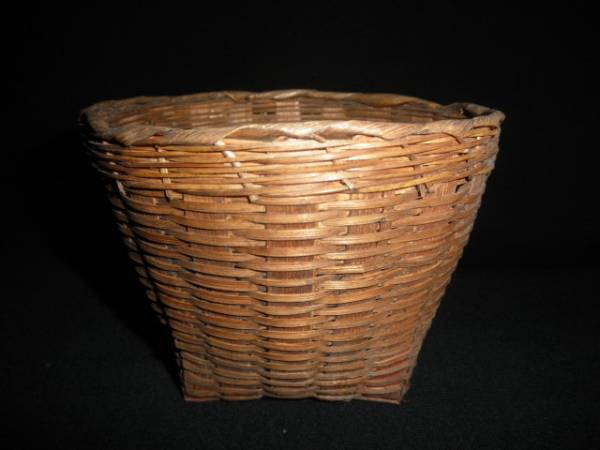 | 古いミニ竹かごです。 特に目立つ不具合はございません。時代汚れはご理解ください。 画像でご判断をお願いいたします。 植木鉢のカバーに! もしくは小物入れ お店のディスプレィ等にいかが? 古民具を愛するお方のご入札をお待ちしております。 サイズ 口径13cm 高さ9.6cm 定形外可 | ||