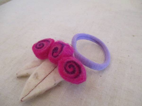 | 商品紹介 | 白い葉モチーフにピンクの木の実モチーフ、パープルのヘアゴムの組み合わせが可愛いです。 |