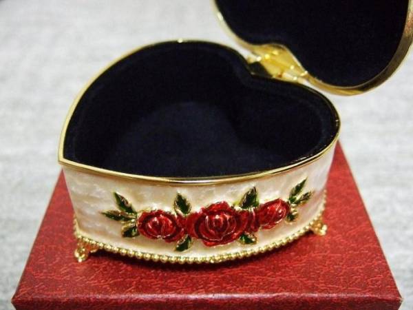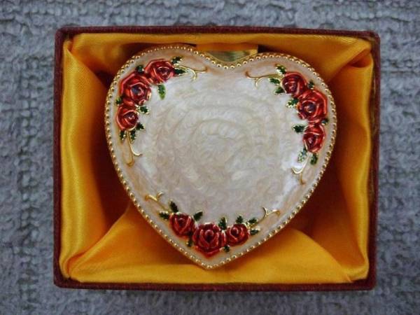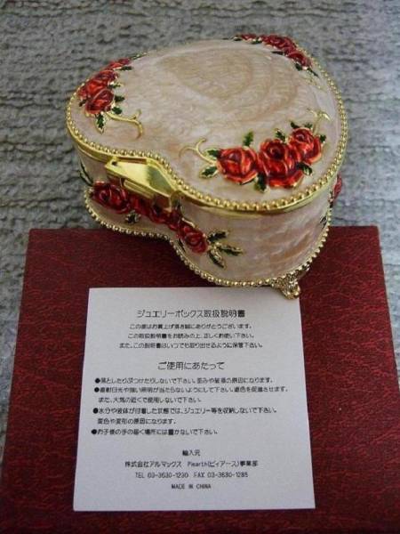 百貨店購入【綺羅】☆ 超美!ベージュ 赤 バラ 模様 上品 美しい ハート型 アクセサリーケース 化粧箱入 宝石箱☆即決!! PayPay ペイペイ