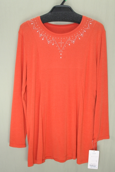 ♪♪♪新品・ネック・飾り切り替えカットソ-・オレンジ40♪♪♪a-37