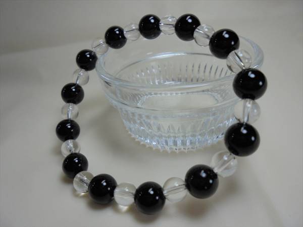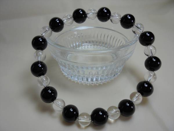 喜心-オニキス8mm-水晶-内径16cm-天然石ブレスレット | |||