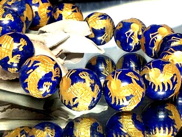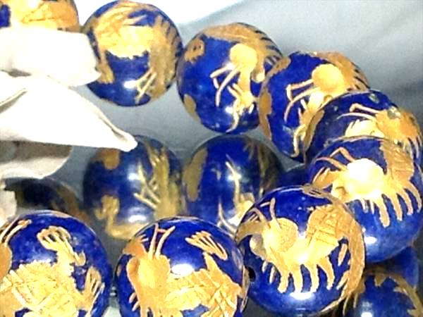 金彫皇帝龍ラピスラズリ最強パワーストーン14ミリ天然石 数珠 | |