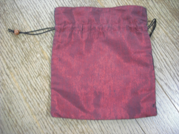 商品説明 | 写真のような巾着袋になります。 ・上を締めるタイプの袋になります。 私見ですが…表側は光沢のある赤っぽいお色で、内側はブラックです。 個人所有になりますので汚れやスレなどの痛みもございます。 おおまかですが・・・21×19(cm)位の大きさです。 約37g 現状でよろしくお願いします。 簡易包装の定形外郵便50gかレターパックライトで発送予定です。 |