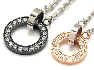 ステンレスペアペンダント サークル&キュービックジルコニア