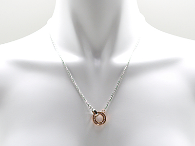 ★お勧め★金属アレルギー&温泉&海水浴ご使用OK★ステンレスペアペンダント★ブラック&ピンクゴールドサークルリング&ジルコニア★