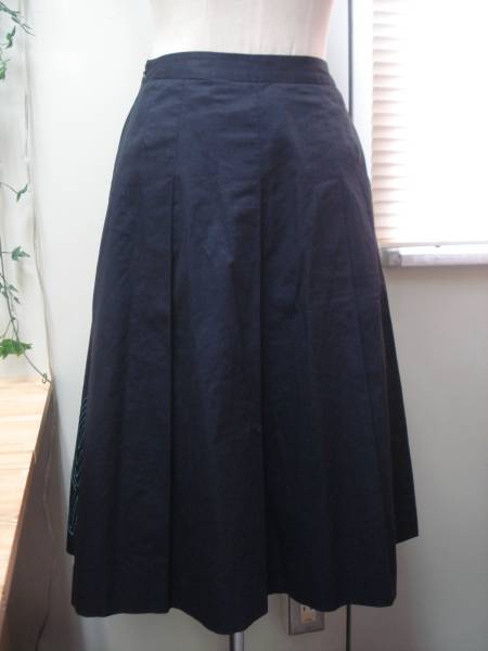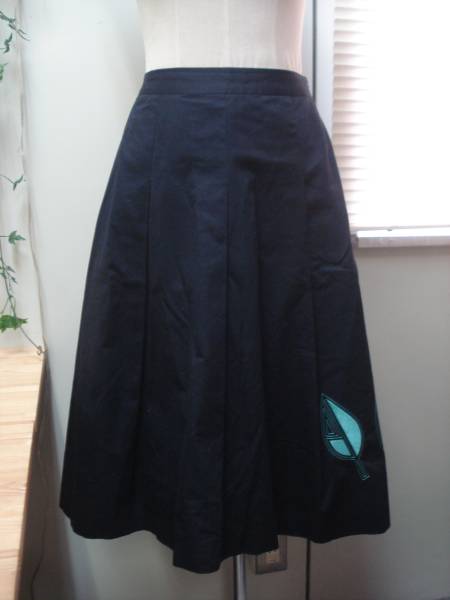 濃紺のシックなお色みに、グリーンのリーフ刺繍が浮かび上がる清楚なスカートとなっております(*^_^*)