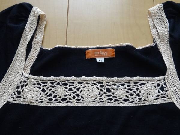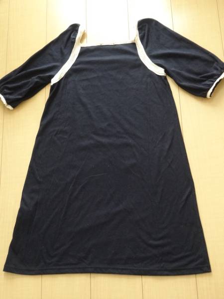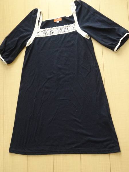 ③USED★飾りすかし網上品シルエットワンピース★ネイビー・M