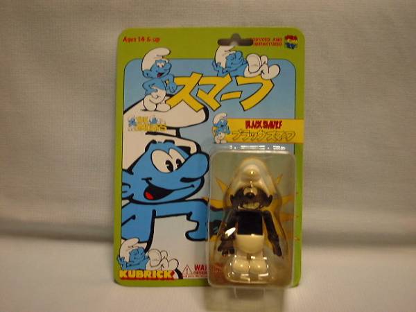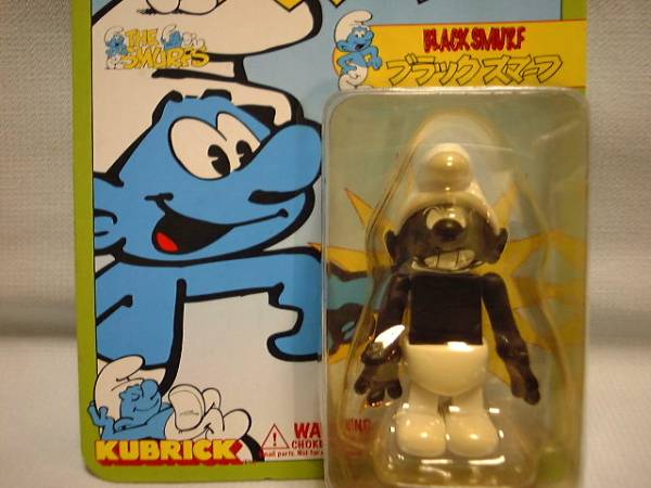 2004メデイコムトイ キューブリック ブラック スマーフ BLACK SMURFです。発売当時、新品で購入後、コレクションケースに飾ってました。ブリスター未開封です。台紙多少色あせ・擦り傷・曲がり等あります。今では入手困難だと思いますが、現状ノークレームノーリターンでお願いします。