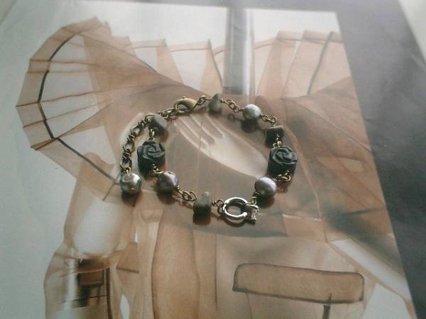 大人の黒に魅せられて・・シリーズです♪シックな黒の石を集めたシリーズです♪グレイオニキスと淡水パールのブレスレット2本セットです♪♪やさしい黒のマットオニキスは8ミリの丸玉です♪パープルグレーの淡水パールを合わせました♪長さは全長22センチ位で調節自由です♪グレーオニキスの小さめのタンブルにはパープルグレーの淡水パールや10ミリのオニキスの両面薔薇とジルコニアのドールリングを合わせました♪シックで可憐な表情です♪長さは全長22センチ位で調節自由です。それぞれ単品でも出品しています♪お揃いのネックレスも出品しています♪シンプルで飽きのこないいつまでも着けられるデザインを考えて作りました!ハンドメイドをご理解頂いてノークレーム、ノーリターンでお願いします