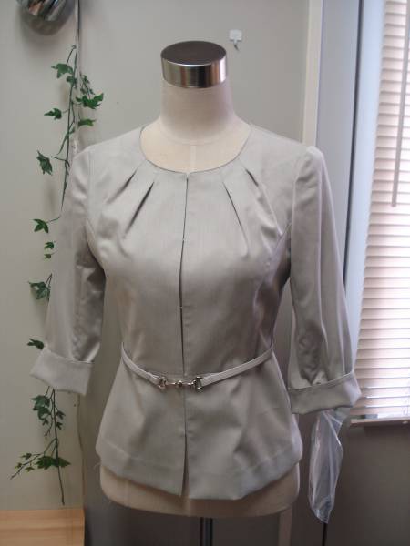 新品タグ付◆Mayleaf◆薄手ナローベルト付ジャケット グレー 7号/w284-36