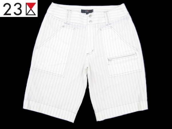 P424★23区SPORT★ピンストライプ日本製ハーフパンツ W61cm