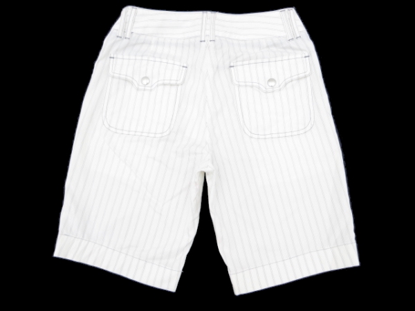 ホワイト(ピンストライプ) ハーフパンツ コインポケット付き ストレッチ素材