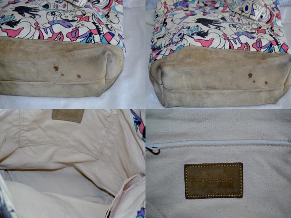 | 商品説明 | 使用品 キャンバス地×底スエード 底角すり傷汚れシミあります 持ち手革製46cm サイズ:W27×11×DH27cm 内部ポケッ3つ 少々汚れありますあります。 詳しく写真参考 |