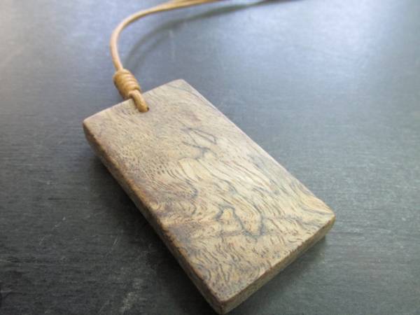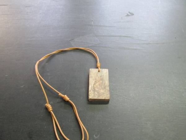 いろいろな色が複雑に絡んで渋い色になり複雑な木目や杢もいろいろと絡んで不思議な模様が現れており面白いペンダントに仕上がりました。