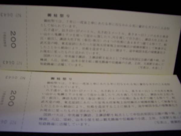 | ■【バス中部】国鉄バス沿線お祭りシリーズ御柱まつり乗車券■s55 | |