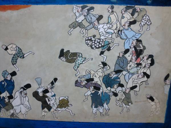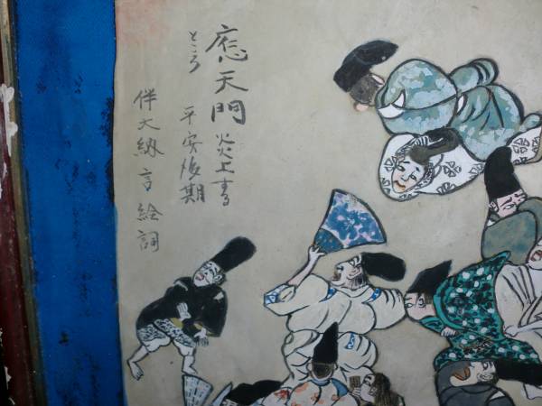 注 平安時代 国寶 伴大納言絵詞を題材に トテモユニークに独特の画法で描かれた 古ーい 應天門炎上之圖。