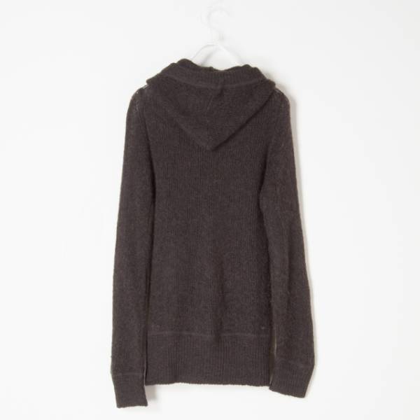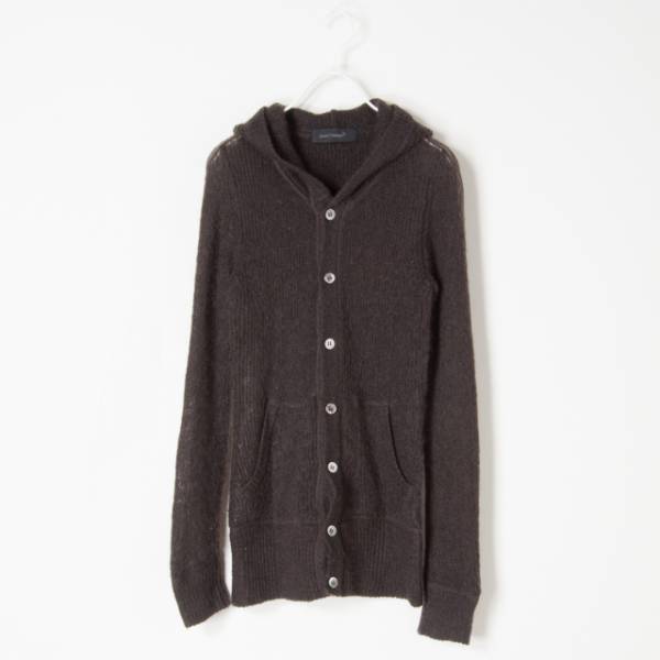 モヘア混のフード付きカーディガンです。柔らかく、軽く羽織れるアイテムです。デザイン自体はとてもシンプルなのでインナーに柄物を合わせたり、インナーとしても活躍するアイテムです。