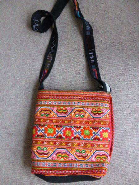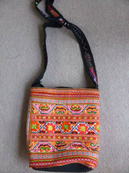 ラオスのモン族の美しいスカート生地をリメイクして作ったショルダーポーチです