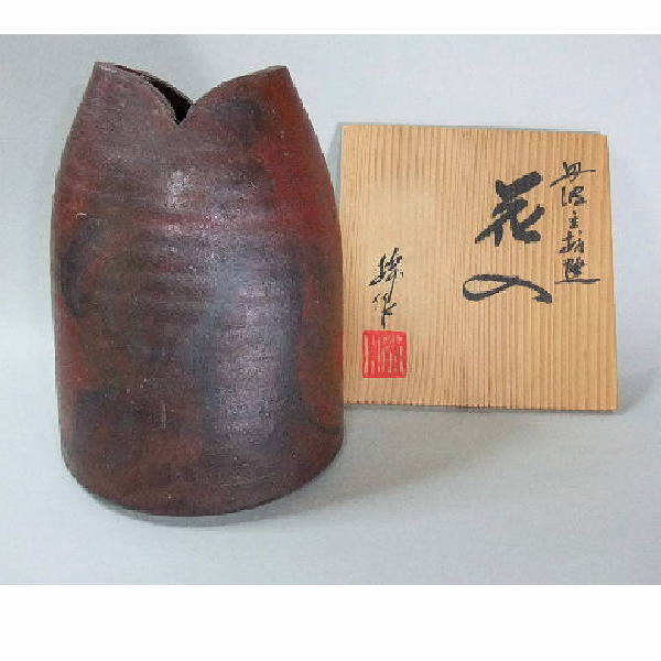 【睦】丹波 立杭焼「市野 勝」陶勝窯 焼き締 花入 未使用 共箱■